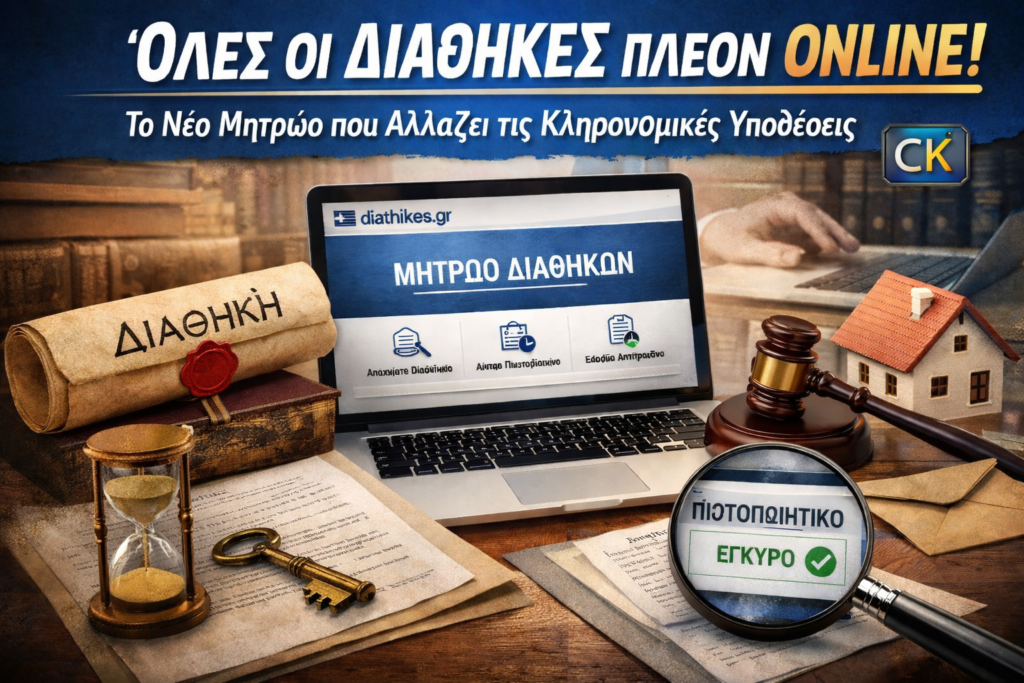 Με μία ιδιαίτερα σημαντική θεσμική παρέμβαση για το δίκαιο κληρονομιών και τον ψηφιακό εκσυγχρονισμό της Δικαιοσύνης, δημοσιεύθηκε στο ΦΕΚ Β’ 2134/09.04.2026 η υπουργική απόφαση 21661 οικ./06-04-2026, με την οποία ρυθμίζεται πλήρως η λειτουργία της νέας ειδικής ηλεκτρονικής πλατφόρμας δημοσίευσης διαθηκών, γνωστής ως «Μητρώο Διαθηκών». Η νέα αυτή δομή εισάγει ένα σύγχρονο, ενιαίο και ασφαλές σύστημα ηλεκτρονικής καταχώρισης, αναζήτησης, δημοσίευσης και έκδοσης πιστοποιητικών που αφορούν διαθήκες, μεταβάλλοντας ουσιαστικά την έως σήμερα πρακτική των φυσικών αρχείων, των καθυστερήσεων και της πολυδιάσπασης πληροφόρησης. Πρόκειται για μία εξέλιξη με ιδιαίτερο ενδιαφέρον τόσο για πολίτες όσο και για συμβολαιογράφους, δικηγόρους, κληρονόμους, τράπεζες και λοιπούς φορείς που εμπλέκονται σε κληρονομικές διαδικασίες.